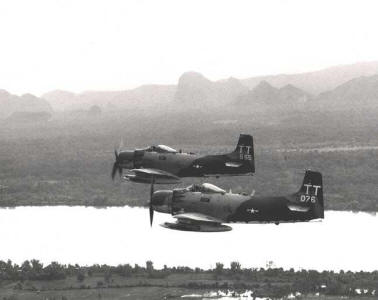 Un total de 3180 appareils fut construit jusqu'en 1957. Ils servirent sous les cocardes de la FRANCE, du VIETNAM, de l'US NAVY et de la ROYAL NAVY britanique. Les <<SKY>> français furent livrés au début des années 60 afin de remplacer les vieux P-47 et VAMPIRE. Au total, 113 appareils furent livrés et utilisés en ALGERIE, à MADAGASCAR, DJIBOUTI et au Tchad. Le Skyraider dont dispose l'AMPAA, ex n°11 de l'Armée de l'air (c/n 7609, BuAer 125 716) porte la décoration de l'escadron de chasse français1/22 <<AIN>> qu'il arbora jusqu'en 1975 avant d'être cédé à la république tchadienne qui l'utilisa jusqu'en 1981. Il fut récupéré en 1988 à N'DJAMENA par Didier CHABLE qui le remit en état de vol sur place et le convoya en France.